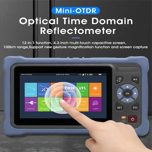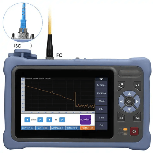Advanced Ethernet Tester with 39.76 mi Range & 8-Hour Battery. It integrates 12 functions, such as auto OTDR expert OTDR, event map, OPM, RJ45 cable tracker, and “computer level” file management to meet various test requirements in different occasions. OTDR has a maximum dynamic range of 26 dB, 8G memory, and can store more than 200,000 curves; it is equipped with 4000 mAh high-density polymer lithium battery, intelligent power saving management, measuring time of more than 8 hours, and supporting power supply and charging of the power bank. Amuse Tech Solutions ethernet testers are used to measure the length, loss connection quality and other parameters of optical fiber. It is widely used in FTTX, secondary backbone network engineering construction, maintenance and emergency repair test, and production measurement of optical fiber and cable.