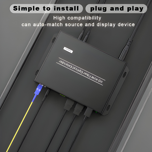 Amuse Tech Solutions HDMI fiber optic extender provides extension of HDMI signals long distances 0.62 mi (1 km) to 12.43 mi (20 km) over one fiber optic cable. It supports high resolution up to 3840 x 2160 @60 Hz. The extender has been tested for high temperature and force, it can be used for a wide range of applications requiring long distance transmission and extreme environment. It can operate between 23 °F to 158 °F (-5 ℃ to +70 ℃), with high resolution and good stability.