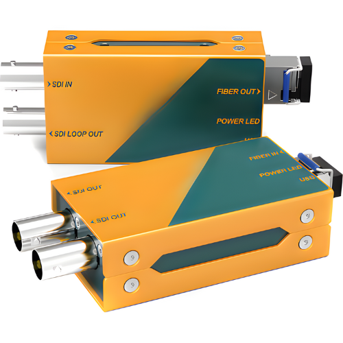 Amuse Tech Solutions fiber optic extender converter single mode is a transmitter or receiver kit supporting single mode lc simplex Fiber extensions up to 6.21 mi (10 km). It is a miniature-style extension solution that supports all sdi formats resolutions up to 4 k at 60 hz with audio and metadata, also supports level A and level B for 3g-sdi. It features a local sdi loop out and dual sdi outputs and supports sd or hd or sd or 3 G or 6 G or 12 G to sdi signals. It is also compatible with multimode Fiber.