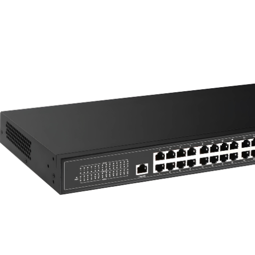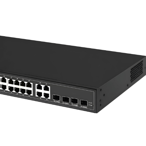 Its 24 x 10 or 100 or 1000 M RJ45 Ports,4 x Integrated 10G SFP Fiber Ports and 1 Console Port, which make it providing enough bandwidth for core data communications and transmission. It can supply strong communication ability with high capacity and support ACL function based on L3-L4. Its comprehensive security control strategy and CPU protect policy helps to improve the fault-tolerant ability,ensure the steady operation and load balancing of Network link. Meanwhile, it supports automatic DoS attack protection, spanning tree, Fast spanning tree protocol and link aggregation, and can be applied to small and medium enterprises, Core layer of community and school.