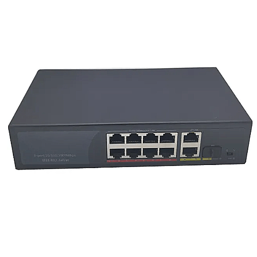 Amuse Tech Solutions PoE gigabit ethernet fiber switch provides 8 100 m Poe ports and 2 100 m electrical ports and 1 SFP optical port uplink.