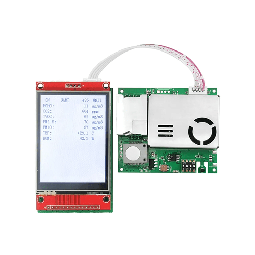 • At the same time Output carbon dioxide, formaldehyde, TVOC, PM 2.5, PM 10, temperature, humidity, a total of seven sets of data