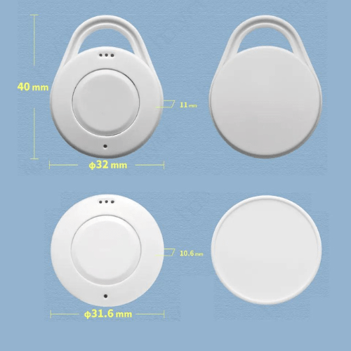 Compact Bluetooth tracker with Nordic nRF52832 chip, ST sensor, and CR2032 battery. Ideal for indoor location, check-ins, and anti-lost applications