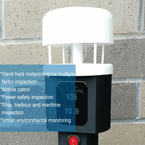 Handheld ZigBee weather station powered by 3 x 18650 rechargeable lithium-ion batteries for over 24 hours of use. IP65 rated with 0% to 100% humidity.