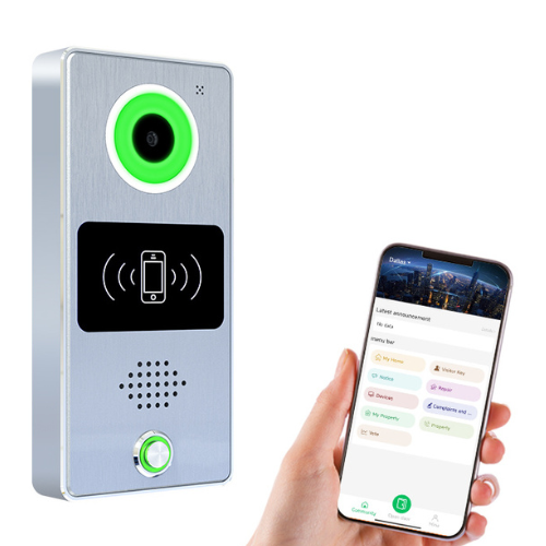 A waterproof 200W HD camera intercom with cloud support, QR code, card, and remote door access, offering local and WiFi intercom functionality.