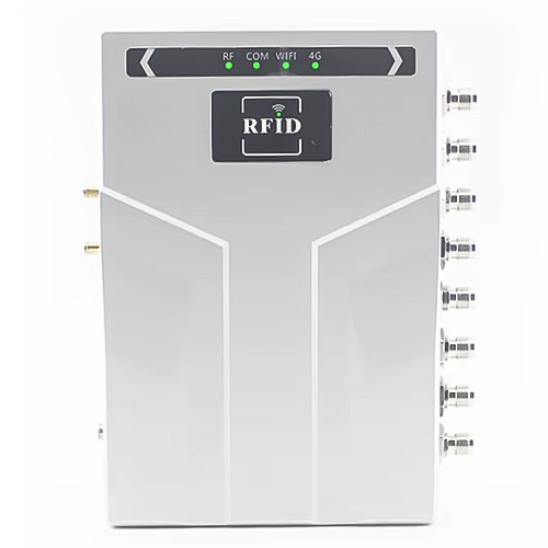 UHF RFID fixed reader writer with 8 antenna ports, GPS, 4 G, multi-tag support, and versatile connectivity for asset management.