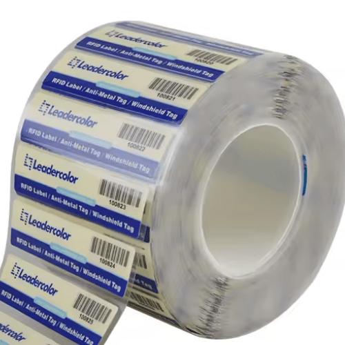 Custom RFID tag for vehicles with 32.8 ft range, waterproof, and self-adhesive. Supports EPC 128 bits, various printing options, and durable in extreme conditions.