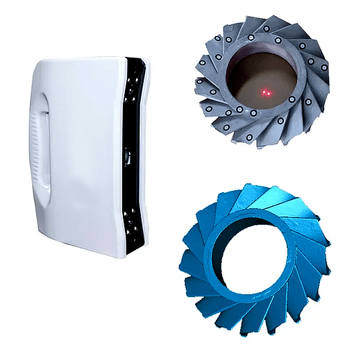 This monochrome 3D scanner has dual 1.31 MP cameras, a 5 MP lens, offers exceptional accurate resolution of 0.04 mm and scan speed of 1,000,000 points/s.