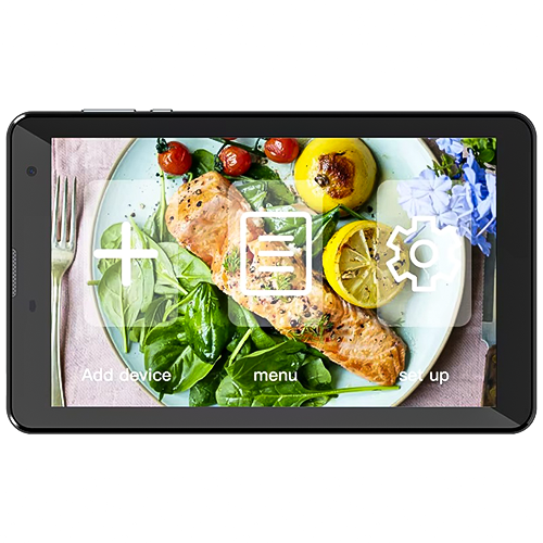 Android tablet for smart kitchen appliances with Zigbee, Z-Wave, Bluetooth, Wi-Fi, fingerprint and Face ID security, and data protection