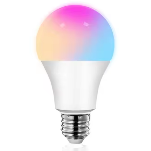 Smart RGB LED bulb with E26 or E27 base, compatible with Alexa and Google Home. Control colors and brightness via app for a personalized lighting setup
