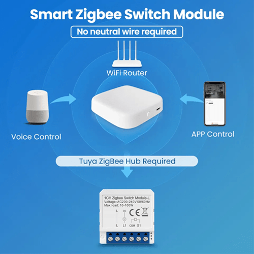 Smart Switch Module Zigbee 3.0 AC 100 V 2.4 GHz to 2.48 GHz IP20 Compact Design – Amuse Tech Solutions