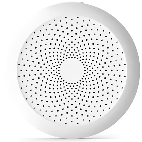 Voice-Controlled RGB Smart Sensor Hub supports Wi-Fi IEEE 802.11 bgn (2.4GHz) and Zigbee 3.0 for versatile connectivity and no charging time needed.