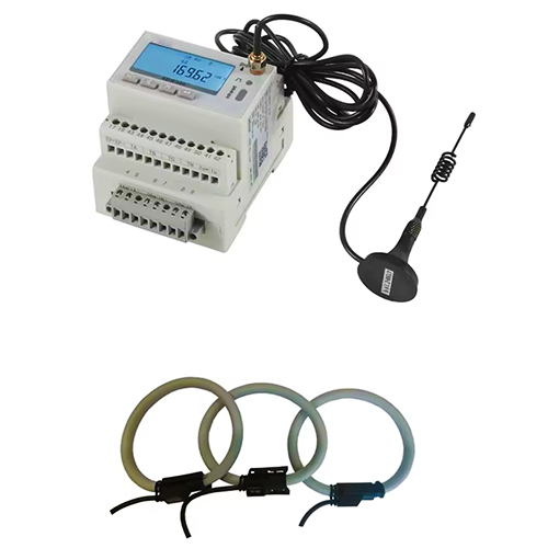 Wi-Fi Electric Power Meter with Rogowski Coil for IoT, offering three-phase measurement, temperature monitoring, residual current, and multi-communication options including RS485, 4G LTE, and WiFi.