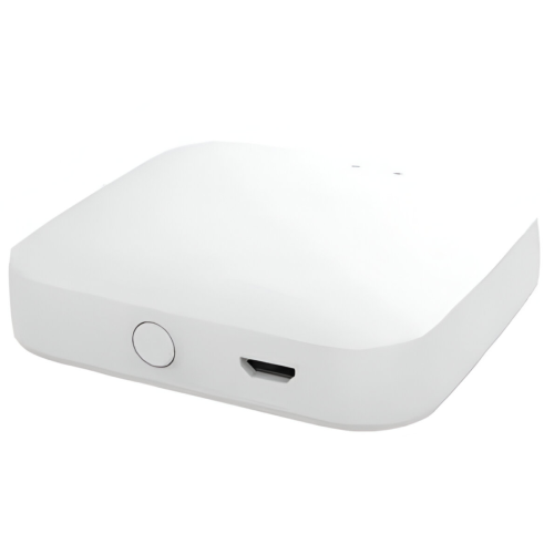 Wi-Fi Smart 5V 1A hub with 2.4G Wi-Fi, ZigBee, BLE, and Mesh support. Operates from 14°F to 113°F and 5% RH to 90% RH for reliable smart device connectivity
