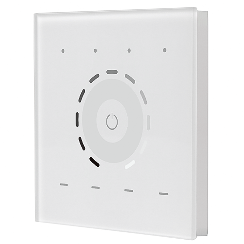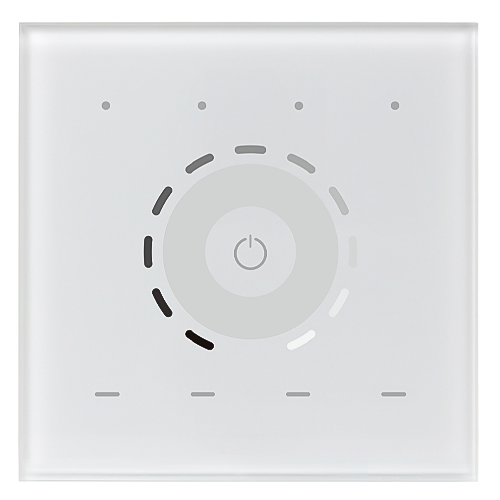 Elegant Z-Wave touch panel dimmer with 4 groups and 4 scenes, user-friendly interface, reliable, sensitive touch, 0.1 % to 100 % dimming, and IP20