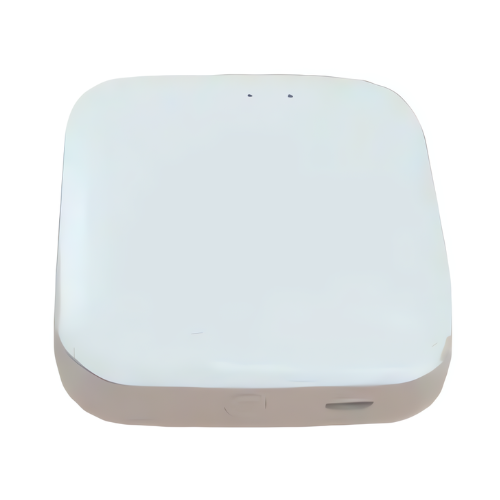 Modern wireless smart gateway with Zigbee 3.0, 5V1A power, white plastic design, for curtain control and seamless integration.
