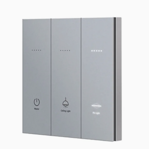 Wireless Zigbee smart switch with three buttons, designed for home, hotel, and office use, offering convenient automation and control