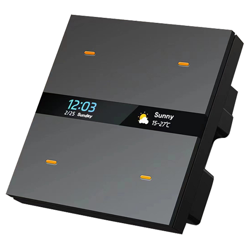 ZigBee 4 way switch panel with 10A current, 100V to 240V support, 2 outlets, IP15, 50,000 mechanical life, and PC aluminum build with 0.8 kg weight.